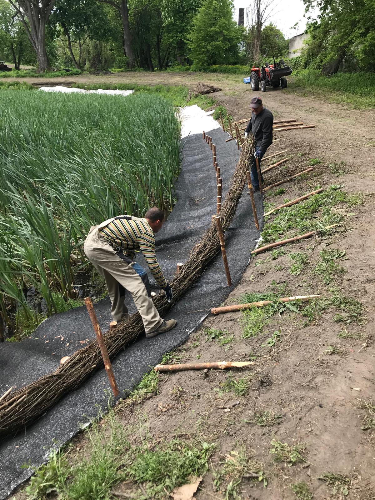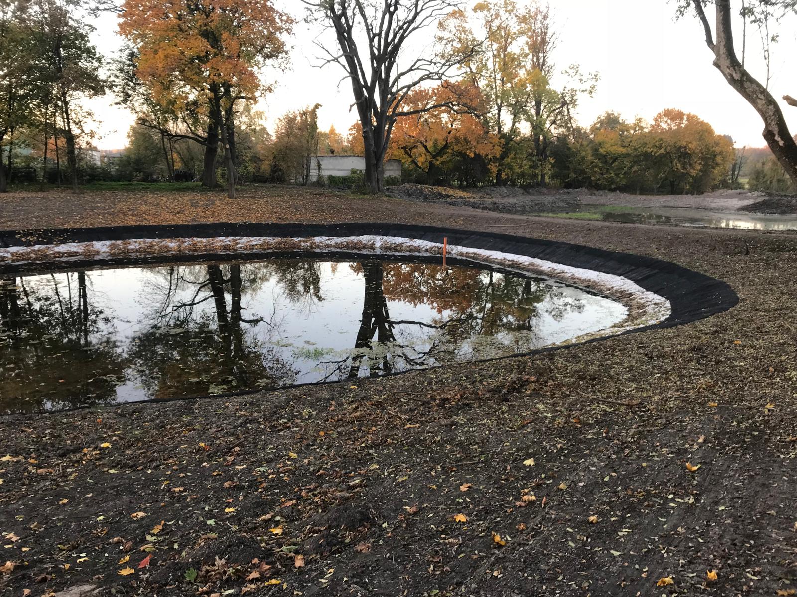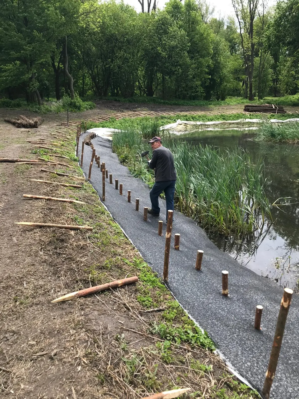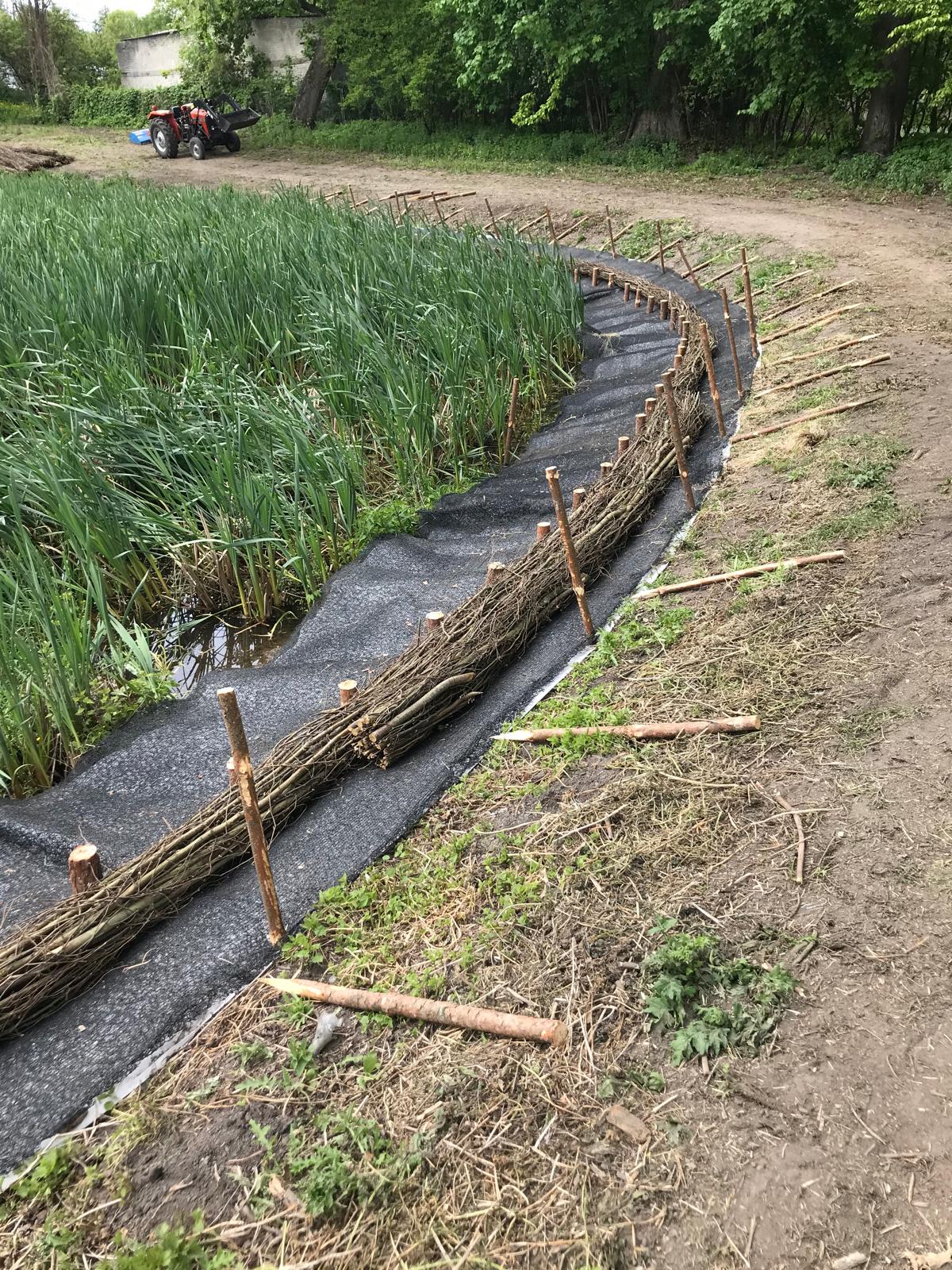 Przywróciliśmy stawy do pożądanego stanu ekologicznego i użytkowego po okresie degradacji i zaniedbania. Celem była poprawa jakości wody, odtworzenie różnorodności biologicznej i przygotowanie stawów do nowego przeznaczenia (kąpieliska i łowiska). Zastosowano dawną, naturalną i ekologiczną metodę stabilizacji gruntu- faszynę w postaci tzw. „kiszek faszynowych” (długich, zbitych wiązek), która została ułożona wzdłuż linii brzegowej i umocowana palikami. Skutecznie zapobiega to podmywaniu i osuwaniu się ziemi do wody.
