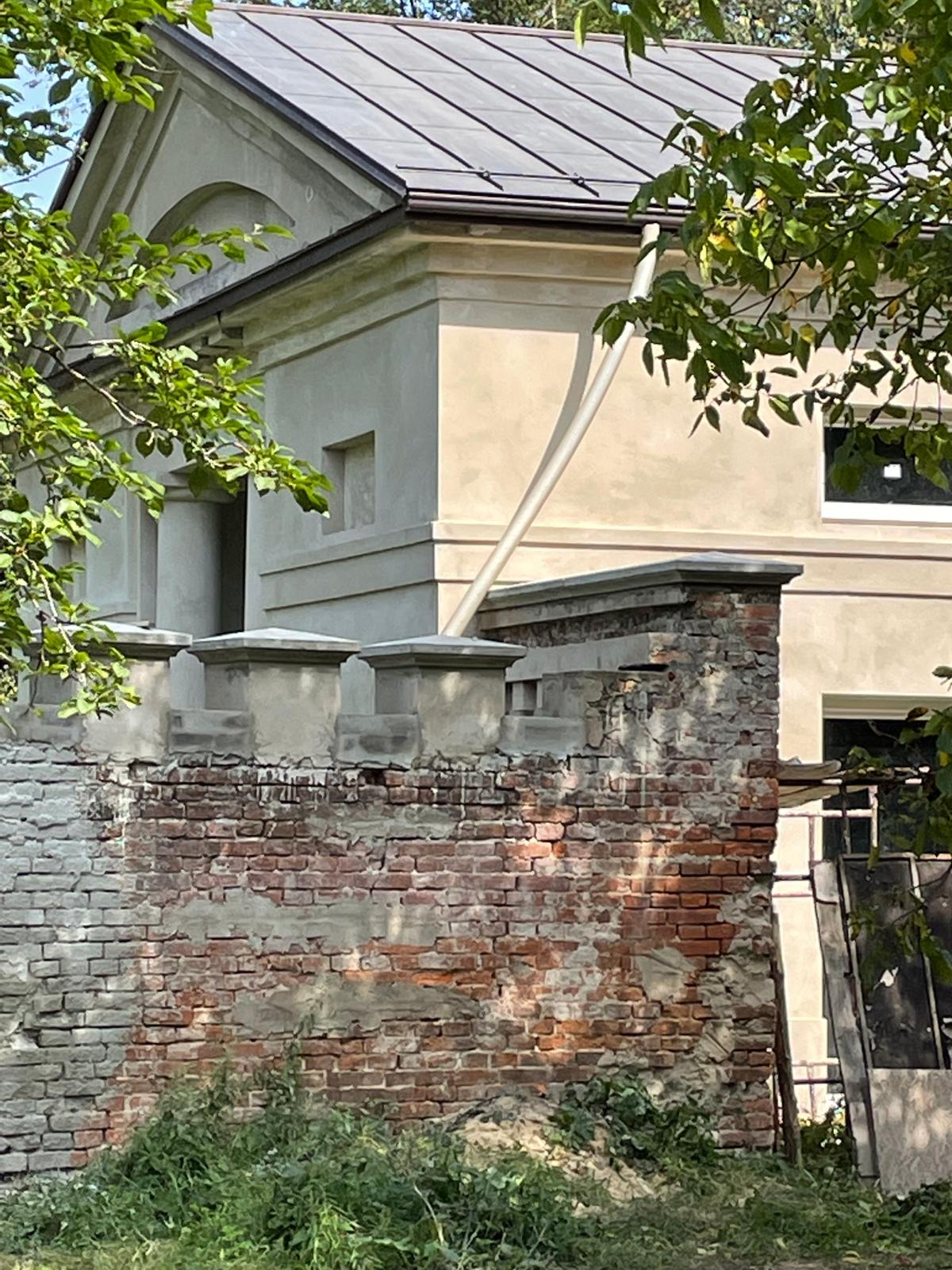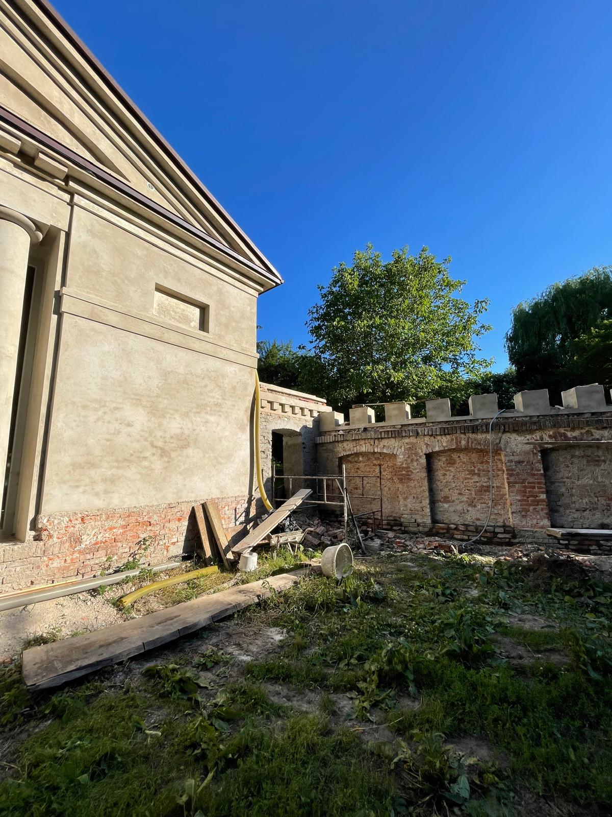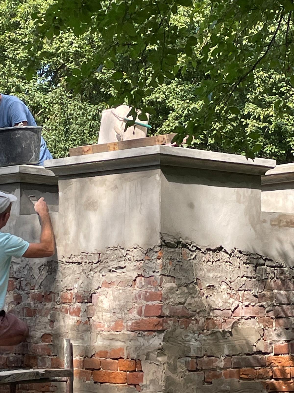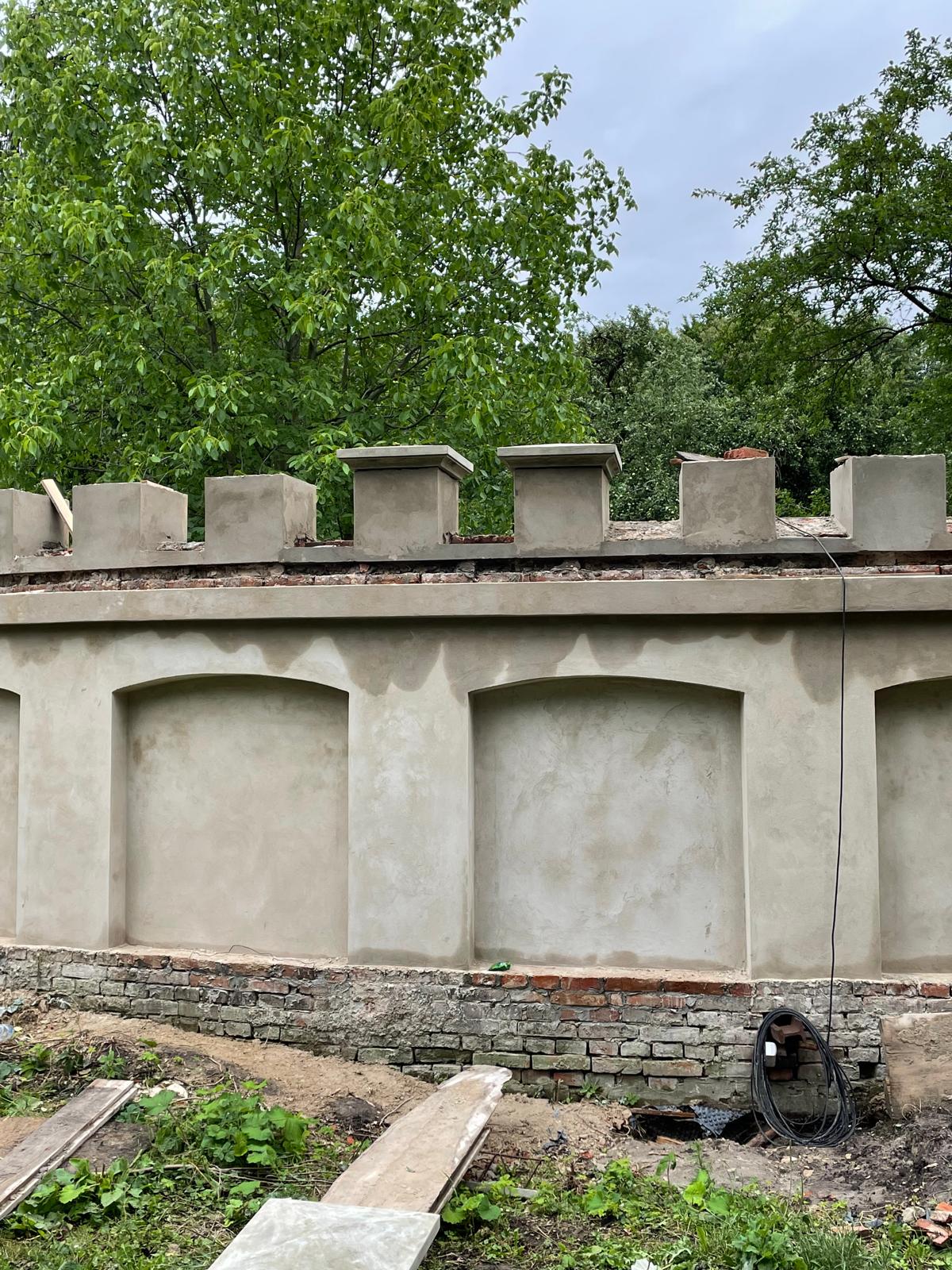 W architekturze naszego krajobrazu, mur stanowi istotną część architektury, który oddziela część prywatną od części gospodarczej. Zastosowaliśmy materiały najwyższej jakości, tj. zaprawę cementowo-wapienną do przywrócenia i odwzorowania tynków. Mur został zabezpieczony czapami betonowymi. Głównym ich zadaniem jest ochrona korony (góry) muru przed szkodliwym działaniem warunków atmosferycznych.