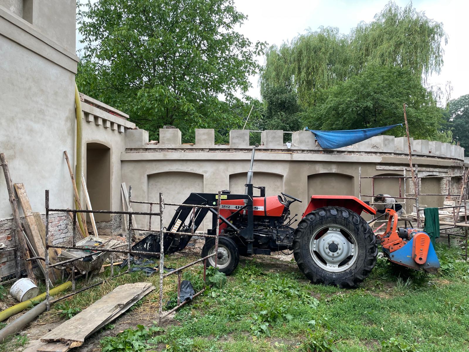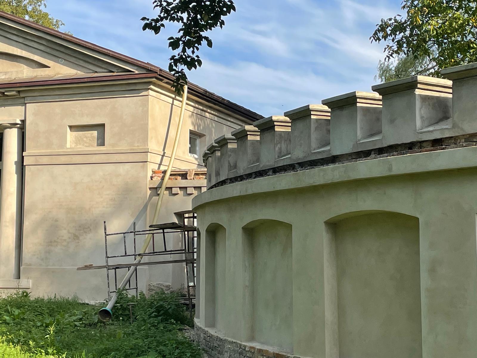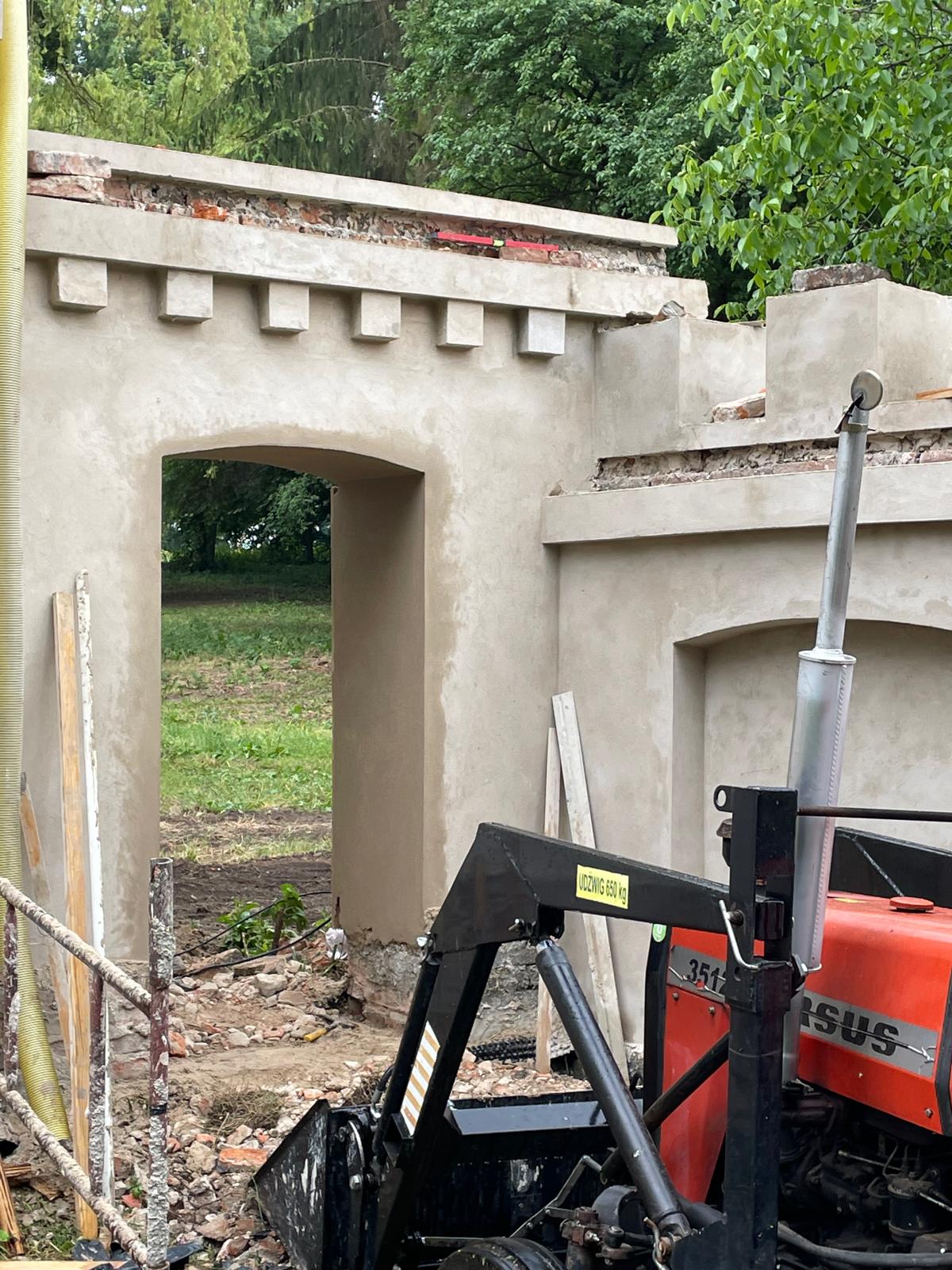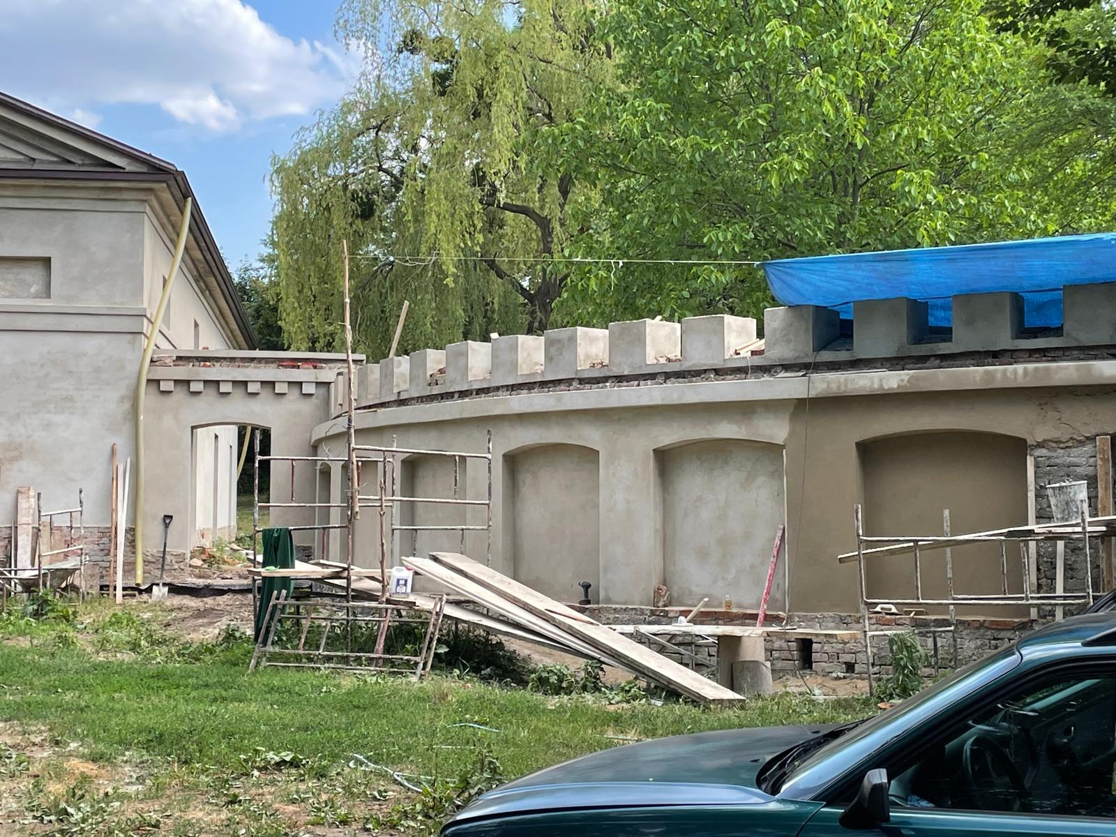 W architekturze naszego krajobrazu, mur stanowi istotną część architektury, który oddziela część prywatną od części gospodarczej. Zastosowaliśmy materiały najwyższej jakości, tj. zaprawę cementowo-wapienną do przywrócenia i odwzorowania tynków. Mur został zabezpieczony czapami betonowymi. Głównym ich zadaniem jest ochrona korony (góry) muru przed szkodliwym działaniem warunków atmosferycznych.