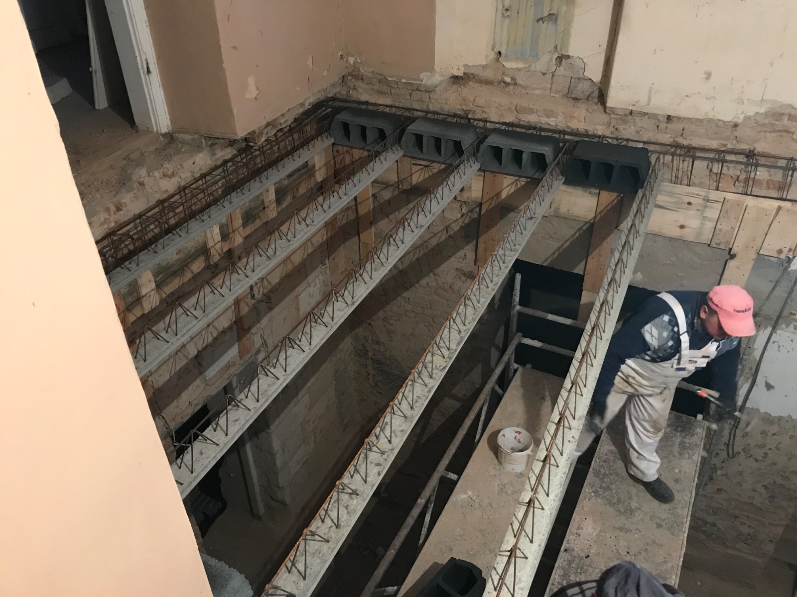 To rozwiązanie nie jest przypadkowe – betonowy rdzeń zapewnia bezpieczeństwo i stabilność konstrukcji na lata, stanowiąc idealną bazę pod planowaną rekonstrukcję. Zwieńczeniem prac będzie montaż oryginalnych, drewnianych stopni, które zostaną starannie osadzone na betonowej konstrukcji. Dzięki temu zabiegowi, mimo nowoczesnego wzmocnienia, klatka schodowa zachowa swój autentyczny, szlachecki charakter i historyczny wygląd, na którym tak zależy obecnym właścicielom.